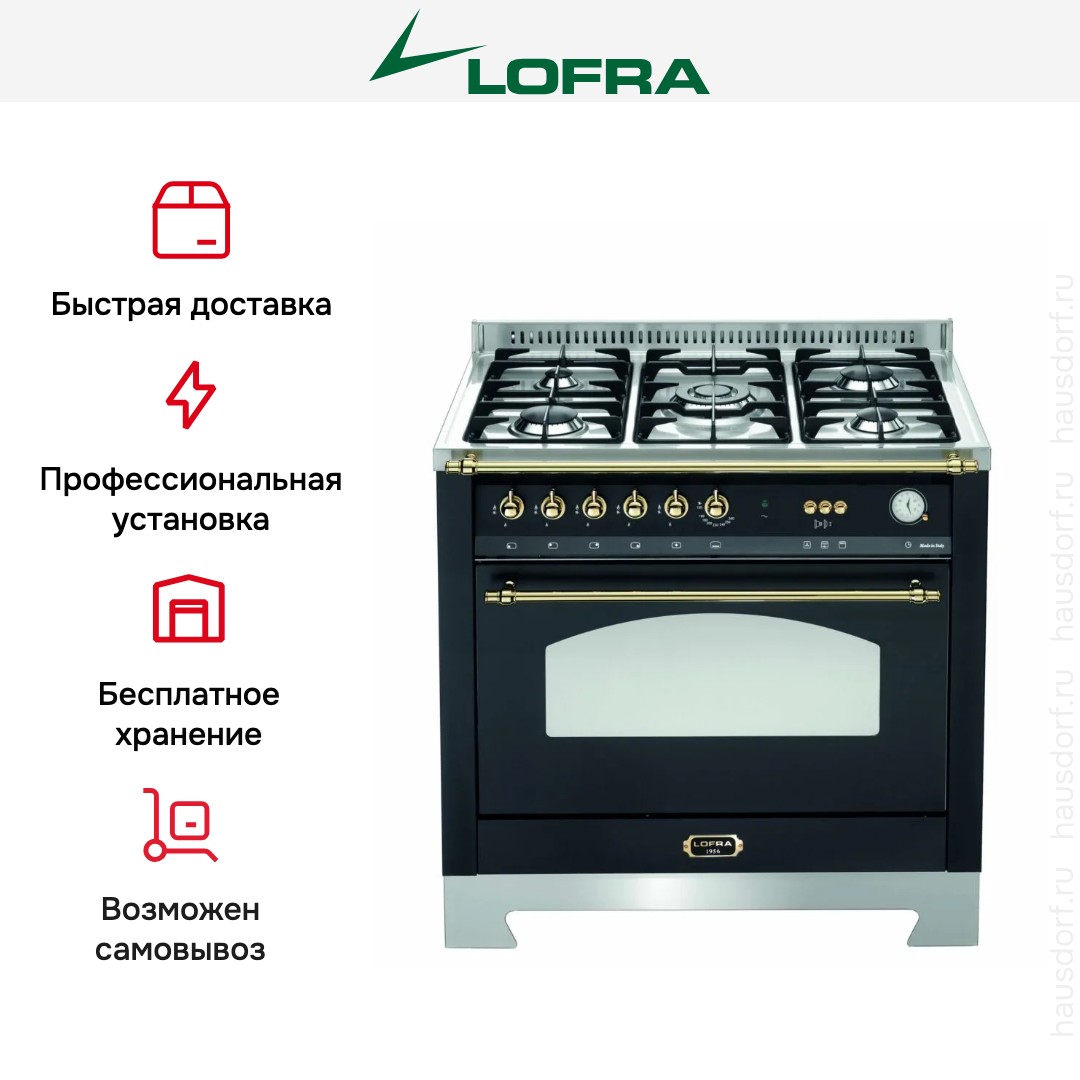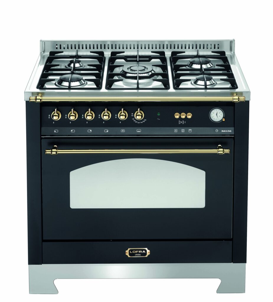 Газовая плита Lofra RNMG96GVGT/Ci Brass — отличный выбор как для квартиры, так и для частного дома. Цвет корпуса черный, он гармонично сочетается с мебелью и техникой похожих оттенков, а также может интересно выглядеть на контрасте с ними. Для управления используется удобная и понятная механическая система. Благодаря ей выбирать режимы приготовления и настраивать параметры температуры очень просто. Переключатели не только выполняют техническую функцию, но и поддерживают общий дизайн; тип элементов: поворотные.