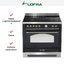 Устройства с тремя духовками также имеют один основной и две дополнительных шкафа разного объема: например, плиты Bertazzoni оснащены большой духовкой объемом 69 литров, средней объемом 54 литра и малой объемом 24 литра. Духовки располагаются в два ряда: две меньшие духовки в одном ряду, большая и ящик для посуды в другом.
