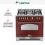 Габариты устройства — от 85 до 90,5 см в высоту, 90 см в ширину и 60 см в глубину — позволяют органично встроить технику в просторные интерьеры, не нарушая пропорций. Хромированная отделка придаёт модели современный, слегка ретро-вдохновлённый облик, подчёркивая изысканность и статус. Подключение к газовой магистрали и электросети обеспечивает стабильную работу всех функций, включая электронные таймеры, защиту от перегрева и блокировку от случайного включения.