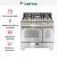 Ширина варочных центров — параметр, которых варьируется в самых больших пределах. Она зависит прежде всего от характеристик модели, в частности, от количества духовок. Производители предлагают модели минимальной шириной 59-60 см с одной духовкой. В магазинах также представлены модели с одной духовкой увеличенной ширины, которая достигает 90 см. Такую же ширину могут иметь варочные центры с двумя духовками, расположенными бок о бок. Модели Lofra с тремя духовками имеют ширину 120 см, а максимальная ширина около 196-200 см отличает модели Restart с дровяной печью и несколькими духовками.