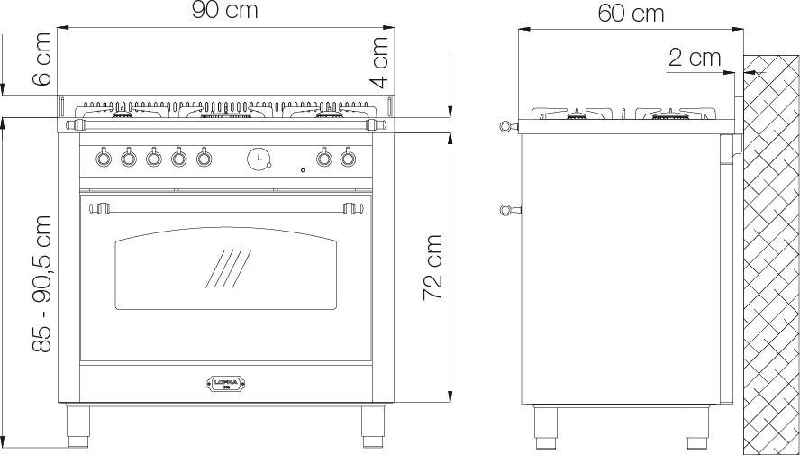 Габариты устройства — от 85 до 90,5 см в высоту, 90 см в ширину и 60 см в глубину — позволяют органично встроить технику в просторные интерьеры, не нарушая гармонии пропорций. Хромированная отделка придаёт модели современный, слегка ретро-вдохновлённый облик, подчёркивая изысканность и статус. Подключение к газовой магистрали и электросети обеспечивает стабильную работу всех систем, включая электронные таймеры, защиту от перегрева и блокировку от случайного включения.