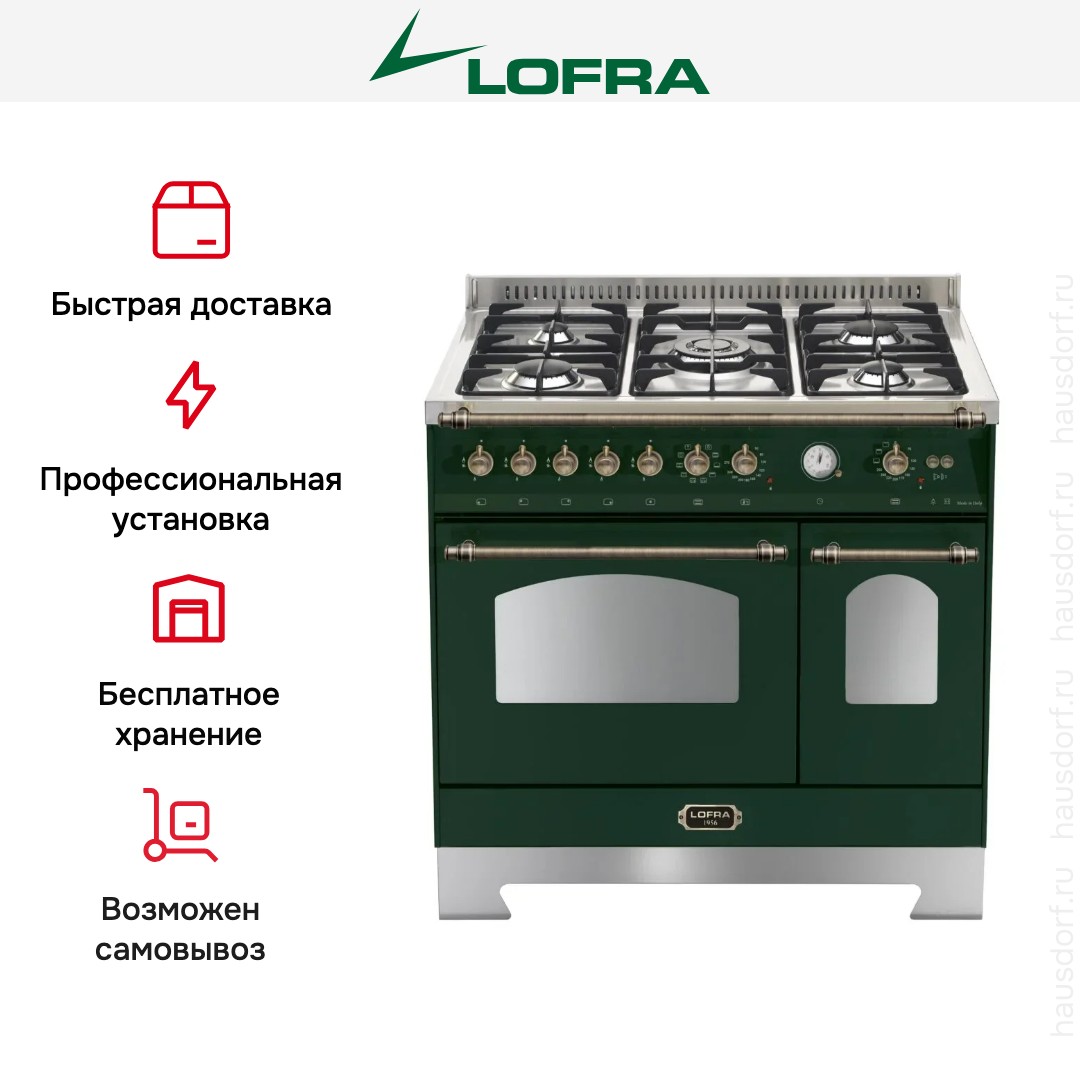 Комбинированная плита Lofra RVD96MFTE/Ci Bronze — отличный выбор как для квартиры, так и для частного дома. Цвет корпуса зеленый, он гармонично сочетается с мебелью и техникой похожих оттенков, а также может интересно выглядеть на контрасте с ними. Для управления используется удобная и понятная механическая система. Благодаря ей выбирать режимы приготовления и настраивать параметры температуры очень просто. Переключатели не только выполняют техническую функцию, но и поддерживают общий дизайн; тип элементов: поворотные.