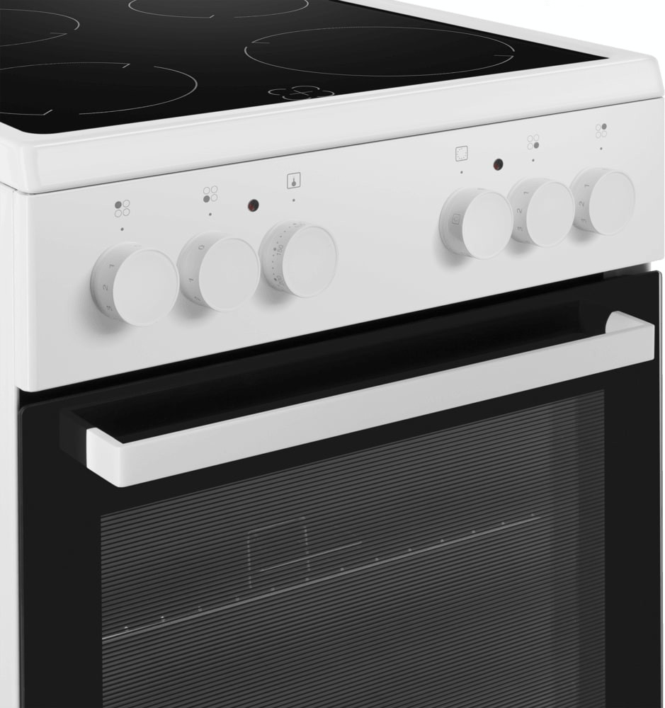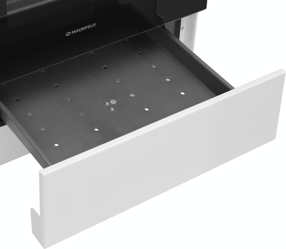 Электрическая плита Maunfeld MEC55CW07 — отличный выбор как для квартиры, так и для частного дома. Цвет корпуса белый, он гармонично сочетается с мебелью и техникой похожих оттенков, а также может интересно выглядеть на контрасте с ними. На внутренней поверхности двери расположена таблица доступных рецептов — полезная и необычная фишка. Для управления используется удобная и понятная механическая система. Благодаря ей выбирать режимы приготовления и настраивать параметры температуры очень просто. Переключатели не только выполняют техническую функцию, но и поддерживают общий дизайн; тип элементов: поворотные.