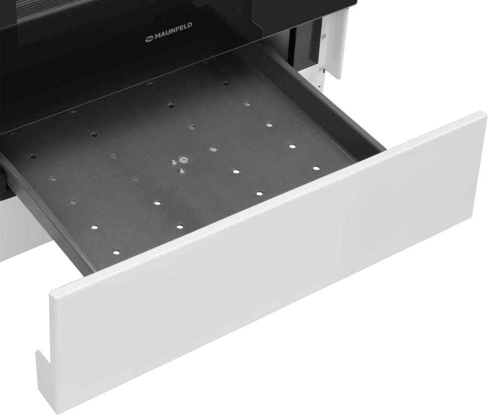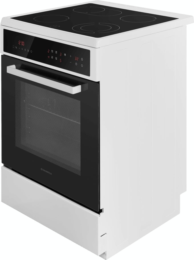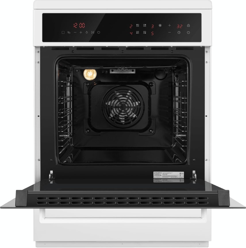 Электрическая плита Maunfeld MEC611CW10TD — отличный выбор как для квартиры, так и для частного дома. Цвет корпуса белый, он гармонично сочетается с мебелью и техникой похожих оттенков, а также может интересно выглядеть на контрасте с ними. На внутренней поверхности двери расположена таблица доступных рецептов — полезная и необычная фишка. Для управления используется удобная и понятная электронная система. Благодаря ей выбирать режимы приготовления и настраивать параметры температуры очень просто. Основная информация о процессе отображается на дисплее. Переключатели не только выполняют техническую функцию, но и поддерживают общий дизайн; тип элементов: сенсорные.