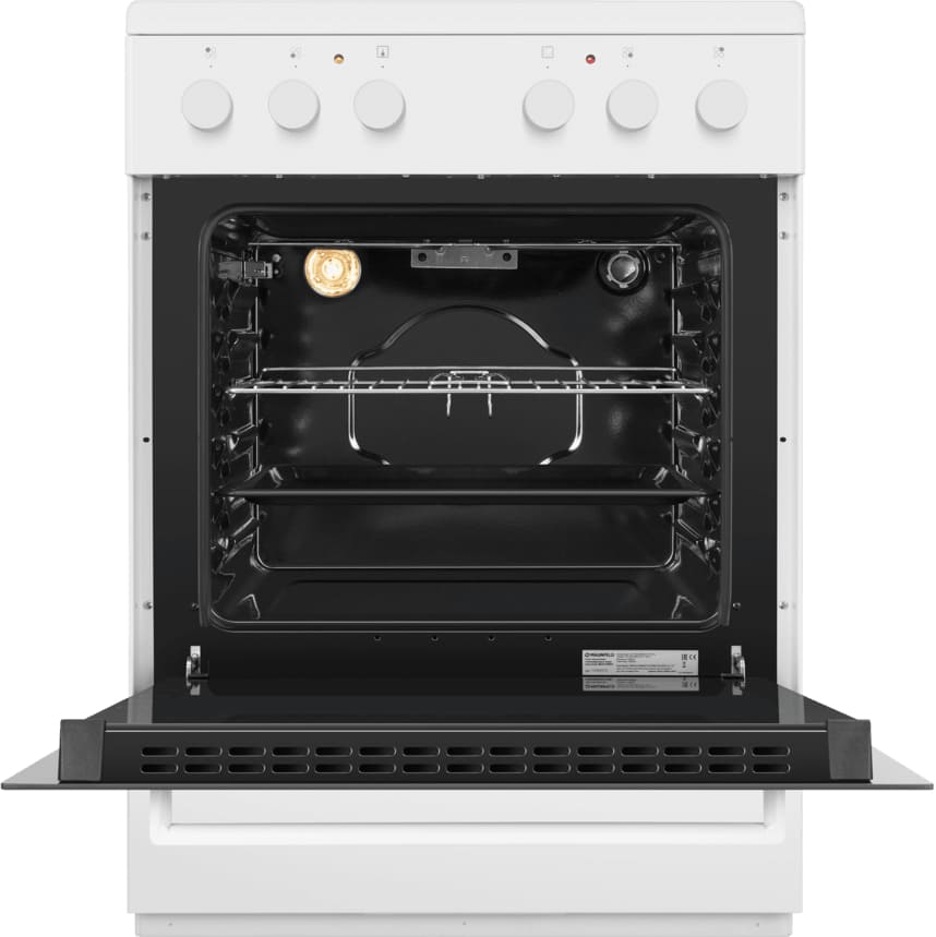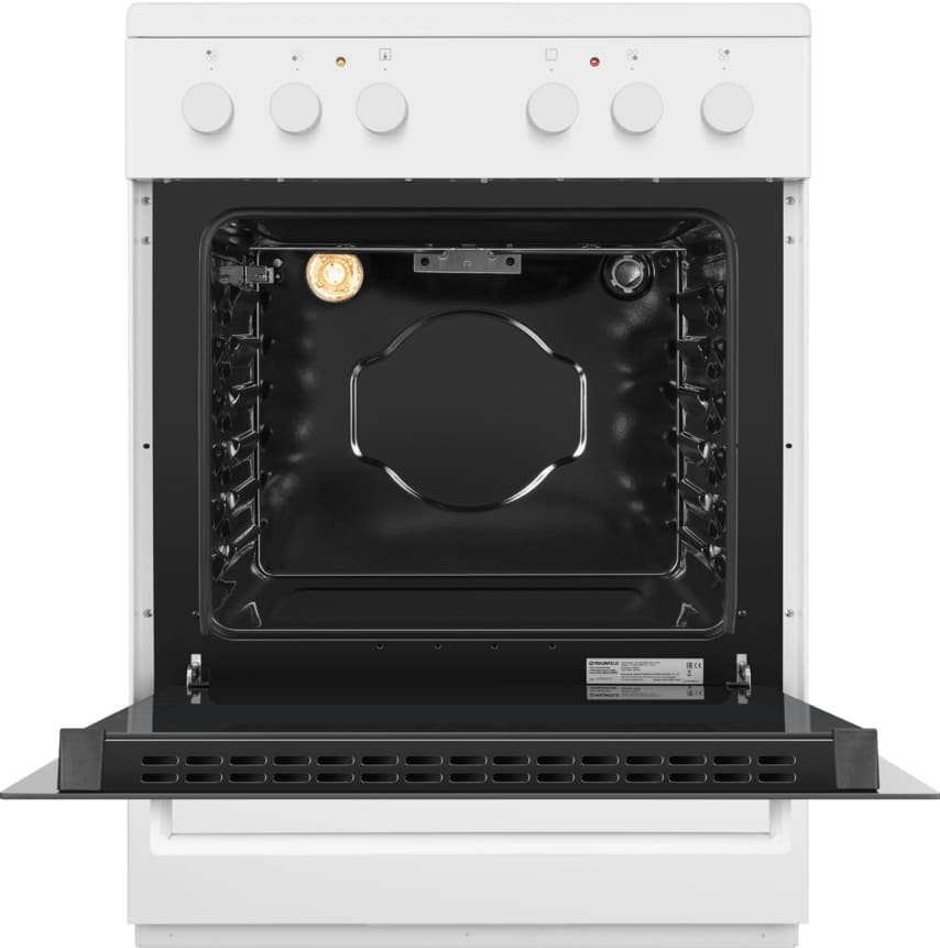 Электрическая плита Maunfeld MEC65CW07 — отличный выбор как для квартиры, так и для частного дома. Цвет корпуса белый, он гармонично сочетается с мебелью и техникой похожих оттенков, а также может интересно выглядеть на контрасте с ними. На внутренней поверхности двери расположена таблица доступных рецептов — полезная и необычная фишка. Для управления используется удобная и понятная механическая система. Благодаря ей выбирать режимы приготовления и настраивать параметры температуры очень просто. Переключатели не только выполняют техническую функцию, но и поддерживают общий дизайн; тип элементов: поворотные.