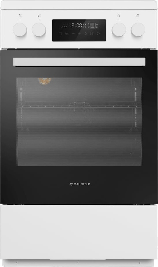 Электрическая плита Maunfeld MIC511W01TD — отличный выбор как для квартиры, так и для частного дома. Цвет корпуса белый, он гармонично сочетается с мебелью и техникой похожих оттенков, а также может интересно выглядеть на контрасте с ними. На внутренней поверхности двери расположена таблица доступных рецептов — полезная и необычная фишка. Для управления используется удобная и понятная электронная система. Благодаря ей выбирать режимы приготовления и настраивать параметры температуры очень просто. Основная информация о процессе отображается на дисплее. Переключатели не только выполняют техническую функцию, но и поддерживают общий дизайн; тип элементов: сенсорные + поворотные.