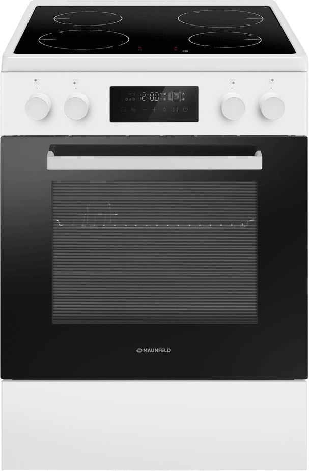 Электрическая плита Maunfeld MIC611W01TD — отличный выбор как для квартиры, так и для частного дома. Цвет корпуса белый, он гармонично сочетается с мебелью и техникой похожих оттенков, а также может интересно выглядеть на контрасте с ними. На внутренней поверхности двери расположена таблица доступных рецептов — полезная и необычная фишка. Для управления используется удобная и понятная электронная система. Благодаря ей выбирать режимы приготовления и настраивать параметры температуры очень просто. Основная информация о процессе отображается на дисплее. Переключатели не только выполняют техническую функцию, но и поддерживают общий дизайн; тип элементов: сенсорные + поворотные.