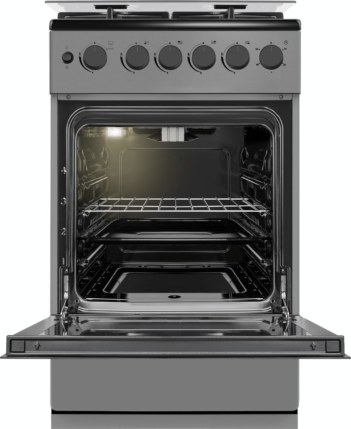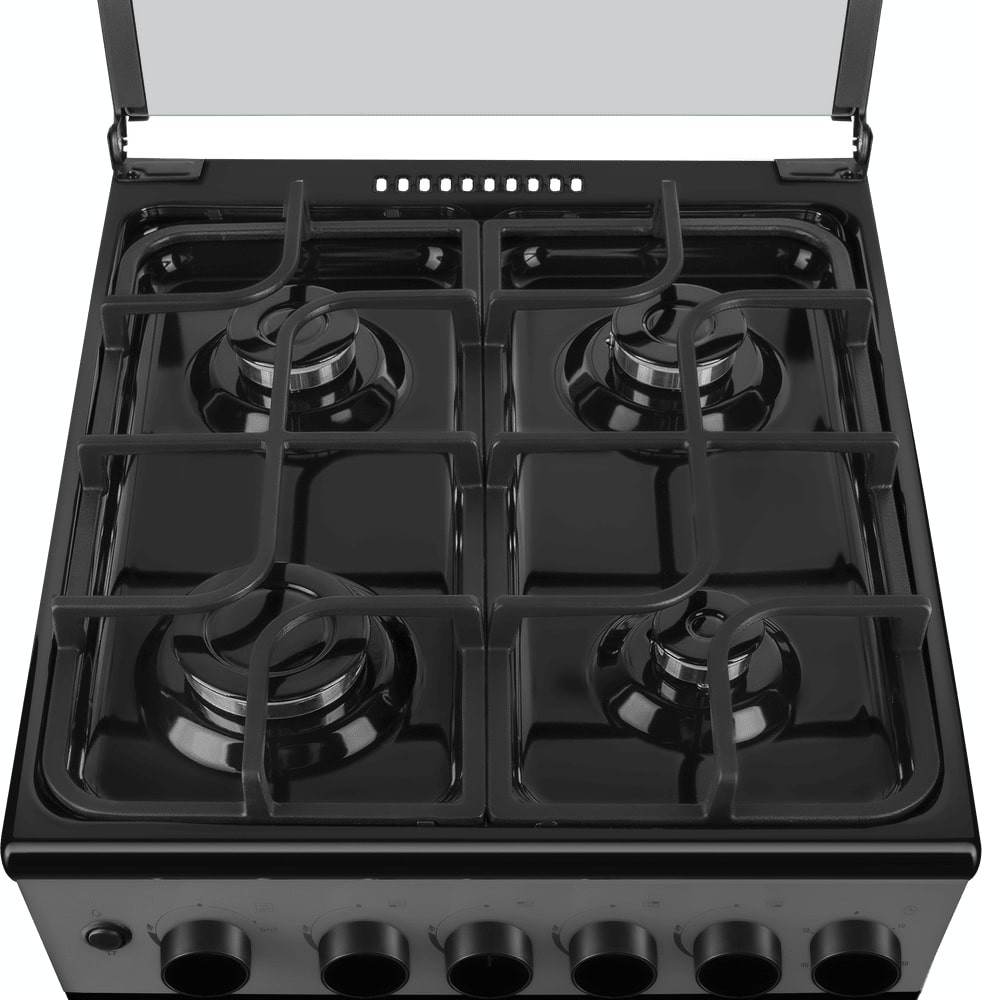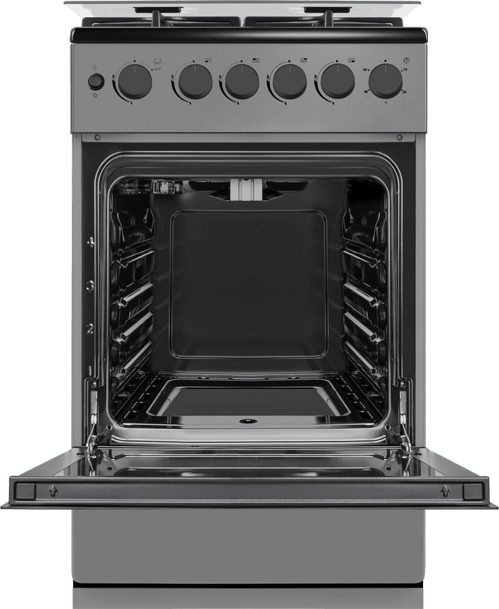 В данной модели установлена газовая варочная поверхность — эффективный нагрев, специальные механизмы для защиты вас от ожогов, плавная регулировка мощности. Стандартное количество конфорок — 4 штуки — подходит большинству пользователей. Панель сделана из металла, который обеспечивает надежность и долгий срок службы; за ней легко ухаживать.