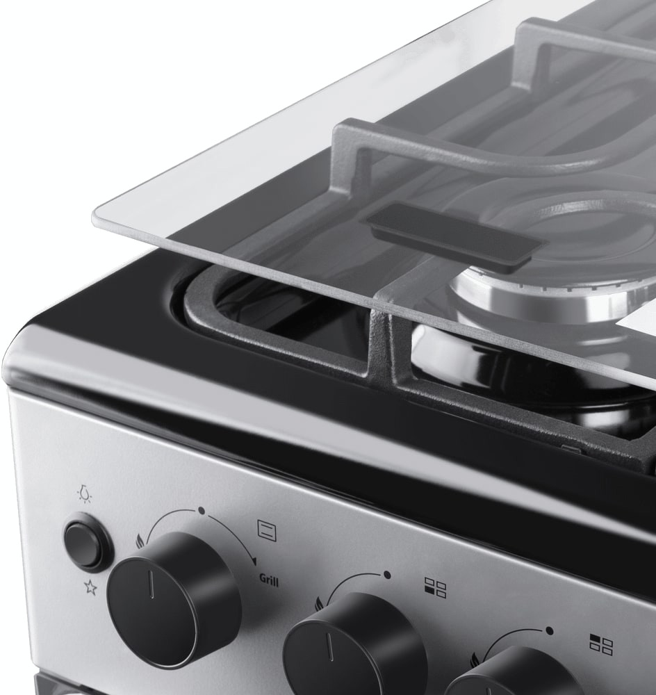 Газовые горелки закрыты специальными решетками, которые не только защищают вас, но и являются устойчивым основанием для посуды с любым дном. Материал решеток: чугун. Зажечь огонь можно буквально одним движением благодаря функции электроподжига. От утечки газа, если пламя случайно погаснет, защищает система контроля и блокировки топлива.