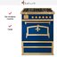 Варочный центр ELG 435 G оборудован газовым духовым шкафом и газовой варочной поверхностью. Ручка-держатель и рамка из латуни эффектно смотрятся в общем образе. Декоративные панели закрывают аналоговые часы и стеклянную поверхность дверцы духового шкафа, из-за чего модель выглядит элегантно и стильно.
