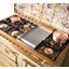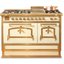Гораздо разнообразнее представлена фурнитура в моделях в классическом, средиземноморском, деревенском или ретро-дизайне. Так, модели производства Lofra оснащаются фигурными рейлингами и поворотными переключателями цвета латуни, состаренного серебра, хрома, золота. В варочных центрах La Cornue интерес представляет круглая накладная ручка дверцы духовки серебристого цвета. Фурнитурой в стиле ретро оснащаются варочные центры производства Smeg, Kaiser, Bertazzoni, но особенно разнообразны и оригинальны модели производства итальянской компании Restart с фурнитурой из меди и латуни. Каждая такая модель изготавливается по индивидуальному проекту, и покупатель может выбрать цвет и форму переключателей, дверцы и ручек духовых шкафов и другие элементы дизайна.
