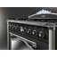 Устройства с тремя духовками также имеют один основной и две дополнительных шкафа разного объема: например, плиты Bertazzoni оснащены большой духовкой объемом 69 литров, средней объемом 54 литра и малой объемом 24 литра. Духовки располагаются в два ряда: две меньшие духовки в одном ряду, большая и ящик для посуды в другом.