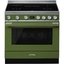 Отдельно стоящая модель шириной 90 см выполнена в оригинальном оливковом цвете. Эмалированный корпус обработан от отпечатков пальцев. Варочная панель оснащена функцией увеличения мощности Booster. Духовка с пиролитической очисткой может автоматически отключается при открывании дверцы.