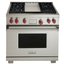 Устройства с тремя духовками также имеют один основной и две дополнительных шкафа разного объема: например, плиты Bertazzoni оснащены большой духовкой объемом 69 литров, средней объемом 54 литра и малой объемом 24 литра. Духовки располагаются в два ряда: две меньшие духовки в одном ряду, большая и ящик для посуды в другом.