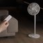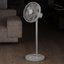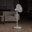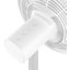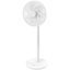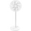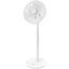 Напольный вентилятор с функцией горизонтального и вертикального обдува: круг с лопастями поворачивается вокруг оси на 120 градусов, а также поднимается и опускается под углом 15-25 градусов. Модель выполнена в классическом белом цвете.