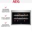 Винный шкаф AEG KWE884520M — компактная встраиваемая модель (шириной 59, 5 см и высотой 40 см) серии Wine Cellar стального цвета с фронтоном черного оттенка. Сенсорная панель управления с электронным дисплеем, показывающим выбранный режим работы устройства, находится над камерой хранения.