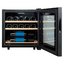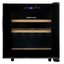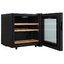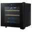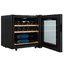 Стеклянная дверь — дополнительный изящный штрих к общему дизайну модели. Специальное покрытие защищает вино от влияния ультрафиолетовых лучей, которые проникают, если шкаф находится в солнечной комнате. Цвет корпуса — черный.