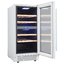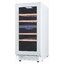Стеклянная дверь — дополнительный изящный штрих к общему дизайну модели. Специальное покрытие защищает вино от влияния ультрафиолетовых лучей, которые проникают, если шкаф находится в солнечной комнате. Цвет корпуса — белый. Дверь можно перевесить на другую сторону, поэтому вариантов размещения его в доме становится больше.