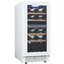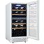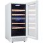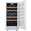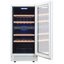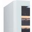Стеклянная дверь — дополнительный изящный штрих к общему дизайну модели. Специальное покрытие защищает вино от влияния ультрафиолетовых лучей, которые проникают, если шкаф находится в солнечной комнате. Цвет корпуса — белый. Дверь можно перевесить на другую сторону, поэтому вариантов размещения его в доме становится больше.