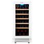 Дизайн дополнен деревянными полками — пять рядов аккуратно размещают до 32 стандартных бутылок 0,75 л. Дерево мягко фиксирует бутылки и снижает передачу вибраций, что важно для сохранения осадков и аромата. Полезный объем 80 литров и монотемпературный режим создают стабильную среду для выдержки и хранения вин одного типа. Внутреннее освещение помогает быстро найти нужную бутылку и выгодно демонстрировать коллекцию.