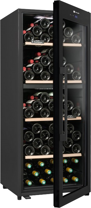 Винный шкаф Climadiff CLD115B1 выполнен в строгом черном корпусе с элегантной стеклопакетной дверью и UV-защитой, что сохраняет этикетки и аромат вина. Его компактные габариты 125,5×50×54 см позволяют разместить прибор в кухне, зоне гостиной или в барной нише. Матовое черное покрытие выглядит современно и не маркое, а правый дверной упор делает удобным встраивание в стандартные конфигурации мебели. Внутри установлен светодиодный LED-освещение, которое бережно подсвечивает бутылки, не нагревая их.