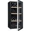Стеклянная дверца винного шкафа — опция, которая решает сразу несколько задач. Прежде всего, она обеспечивает хороший обзор, позволяет контролировать коллекцию и демонстрировать ее, не открывая дверцу и не нарушая температурный режим. Стекло не только позволяет изолировать вино от наружного воздуха, но и не пропускает посторонние запахи. Прямые солнечные лучи также отрицательно влияют на качество вина, вызывая окисление танина — соединения, которое в нем содержится, и напиток становится горьким. Стеклянные дверцы снабжаются фильтрами или покрытием, защищающим бутылки по ультрафиолета. Способы защиты могут быть самыми разными — от наклеенной пленки до специального напыления. Иногда в дверцу устанавливается зеркальное стекло, в других случаях на него наносят тонировку в технике шелкографии.