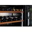 Электронное управление с цифровым дисплеем делает настройку интуитивной и точной, а встроенный LED-дисплей показывает выбранные параметры. Светодиодное внутреннее освещение экономично и не нагревает содержимое, позволяя осмотреть коллекцию без частого открытия двери. Стеклопакет защищен от УФ-излучения и тонирован, что минимизирует фотохимические изменения вина и продлевает срок хранения.