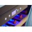 Кнопки для управления подсветкой выносятся на панель управления. Лампы синего, белого или голубого цветов могут располагаться в верхней части камеры или на боковых сторонах. Дополнительное освещение может устанавливаться в винных холодильниках с зоной для сервировки: она обеспечивает лучший обзор и доступ при подготовке вина к подаче.