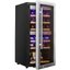 Производители предлагают винные шкафы, оснащенные одной, двумя, тремя и четырьмя камерами, которые могут располагаться как друг под другом, так бок и бок. Самые популярные — однокамерные модели, ассортимент которых особенно широк, но втором месте — двухкамерные. Над заметить, что количество камер не зависит напрямую от габаритов изделия: например, однокамерные модели увеличенных габаритов — далеко не редкость. Их высота может варьироваться в пределах от 14 см до 219 см, а ширина — от 13 см до 150 см.