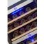 Винный шкаф с двумя температурными зонами, настройки которых не зависят друг от друга. Благодаря такому разделению вы можете создать разные условия сверху и снизу для хранения красных, белых, игристых вин. Прибор можно установить в нишу, оставляя зазоры 3-5 см, так как он не предназначен для встраивания непосредственно в мебель.