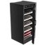 Производители предлагают винные шкафы, оснащенные одной, двумя, тремя и четырьмя камерами, которые могут располагаться как друг под другом, так бок и бок. Самые популярные — однокамерные модели, ассортимент которых особенно широк, но втором месте — двухкамерные. Над заметить, что количество камер не зависит напрямую от габаритов изделия: например, однокамерные модели увеличенных габаритов — далеко не редкость. Их высота может варьироваться в пределах от 14 см до 219 см, а ширина — от 13 см до 150 см.