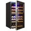 Отдельностоящий винный шкаф Cold Vine C80-KBF2 предназначен для хранения до 66 бутылок типа «Бордо». Модель характеризуется наличием двух зон охлаждения, каждая из которых предусматривает отдельную сенсорную панель управления с температурным дисплеем. Корпус устройства дополнен двухслойной стеклянной дверцей в стальной окантовке, надежно защищающей напитки от УФ-излучения.