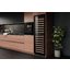 Встраиваемые холодильники для вина оснащаются специальной системой вентиляции: охлаждающая система у них находится в нижней части корпуса спереди. На такие устройства не навешивается мебельный фасад: дверца с затемненным стеклом остается на виду и открывается на достаточно широкий угол для свободного выдвижения деревянных полок.