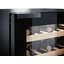 Стеклянная дверь позволяет следить за показателями на внутренней панели управления, при этом она не пропускает вредные для алкоголя ультрафиолетовые лучи, так как имеет специальное защитное покрытие. На цифровом дисплее отображается фактическая температура в обеих зонах.