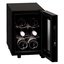 Современные винные шкафы всех типов, в том числе компрессорные, темоэлектрические и абсорбционные, оснащаются электронной системой управления — кнопочной или сенсорной. Панель управления, с помощью которой производится регулировка параметров работы, может размещаться внутри винного шкафа за дверцей или снаружи в верхней части корпуса. Второй вариант более удобен, поскольку для изменения параметров не нужно открывать дверцу. Кроме того, такое расположение панели управления позволяет поддерживать более стабильную температуру в камере. Однако для больших винных шкафов в классическом стиле из ценных пород дерева предпочтительнее скрытая панель управления, которая не портит их внешний вид.