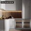 Встраиваемые холодильники для вина оснащаются специальной системой вентиляции: охлаждающая система у них находится в нижней части корпуса спереди. На такие устройства не навешивается мебельный фасад: дверца с затемненным стеклом остается на виду и открывается на достаточно широкий угол для свободного выдвижения деревянных полок.