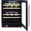 Дверца у большинства винных шкафов изготавливается из многослойного тонированного стекла. Такой материал, с одной стороны, позволяет оценивать коллекцию вин визуально, не открывая дверцу, в условиях стабильной температуры и влажности. С другой стороны, затемненное стекло с УФ-фильтром в виде напыления или специальной пленки надежно изолирует винные бутылки негативного воздействия ультрафиолетового излучения. Несколько слоев стекла обеспечивают при этом дополнительную защиту. Очень часто стекло в дверце заключается в рамку из дерева или металла. Натуральный или окрашенный металл или дерево не только способствуют прочности конструкции, но и превращают винный холодильник, особенно отдельно стоящий, в эффектный элемент обстановки.