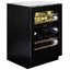 Современные винные шкафы всех типов, в том числе компрессорные, темоэлектрические и абсорбционные, оснащаются электронной системой управления — кнопочной или сенсорной. Панель управления, с помощью которой производится регулировка параметров работы, может размещаться внутри винного шкафа за дверцей или снаружи в верхней части корпуса. Второй вариант более удобен, поскольку для изменения параметров не нужно открывать дверцу. Кроме того, такое расположение панели управления позволяет поддерживать более стабильную температуру в камере. Однако для больших винных шкафов в классическом стиле из ценных пород дерева предпочтительнее скрытая панель управления, которая не портит их внешний вид.