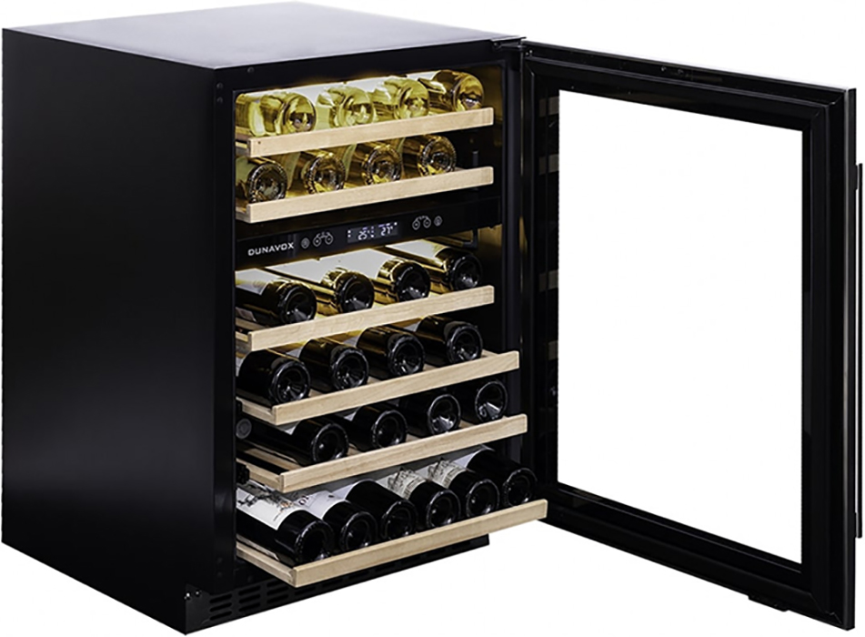 Винный холодильник Dunavox DAUF-46.145DMB имеет две температурные зоны, в которых одновременно можно хранить разные сорта алкоголя и выставлять разные сочетания настроек. Он встраивается в нишу, что удобно, если у вас ограничен метраж помещения. Благодаря компактным размерам данная модель — отличный выбор для офиса, гостиничного номера. Количество бутылок, которое можно разместить с учетом полной комплектации и из расчета объема бутылки 0,75 л, — 46 шт.
