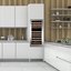 Встраиваемые холодильники для вина оснащаются специальной системой вентиляции: охлаждающая система у них находится в нижней части корпуса спереди. На такие устройства не навешивается мебельный фасад: дверца с затемненным стеклом остается на виду и открывается на достаточно широкий угол для свободного выдвижения деревянных полок.