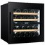 Модель рассчитана на 25 стандартных бутылок объёмом 0,75 л и общий объем 65 литров, что делает её удобной для небольшой домашней коллекции или бара. Двухтемпературная конструкция обеспечивает две полностью независимые зоны с диапазоном 5-18 °C, верхняя зона работает в пределах 5-10 °C, а нижняя — 10-18 °C. Такое разделение позволяет одновременно хранить белые и красные вина в оптимальных условиях и быстро подавать напитки нужной температуры. Сенсорное управление и цифровой дисплей дают точный контроль каждого отделения без лишних манипуляций.