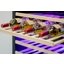 Кнопки для управления подсветкой выносятся на панель управления. Лампы синего, белого или голубого цветов могут располагаться в верхней части камеры или на боковых сторонах. Дополнительное освещение может устанавливаться в винных холодильниках с зоной для сервировки: она обеспечивает лучший обзор и доступ при подготовке вина к подаче.