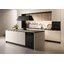 Встраиваемые холодильники для вина оснащаются специальной системой вентиляции: охлаждающая система у них находится в нижней части корпуса спереди. На такие устройства не навешивается мебельный фасад: дверца с затемненным стеклом остается на виду и открывается на достаточно широкий угол для свободного выдвижения деревянных полок.