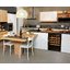 Встраиваемые холодильники для вина оснащаются специальной системой вентиляции: охлаждающая система у них находится в нижней части корпуса спереди. На такие устройства не навешивается мебельный фасад: дверца с затемненным стеклом остается на виду и открывается на достаточно широкий угол для свободного выдвижения деревянных полок.