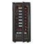 Современные винные шкафы всех типов, в том числе компрессорные, темоэлектрические и абсорбционные, оснащаются электронной системой управления — кнопочной или сенсорной. Панель управления, с помощью которой производится регулировка параметров работы, может размещаться внутри винного шкафа за дверцей или снаружи в верхней части корпуса. Второй вариант более удобен, поскольку для изменения параметров не нужно открывать дверцу. Кроме того, такое расположение панели управления позволяет поддерживать более стабильную температуру в камере. Однако для больших винных шкафов в классическом стиле из ценных пород дерева предпочтительнее скрытая панель управления, которая не портит их внешний вид.