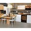 Встраиваемые холодильники для вина оснащаются специальной системой вентиляции: охлаждающая система у них находится в нижней части корпуса спереди. На такие устройства не навешивается мебельный фасад: дверца с затемненным стеклом остается на виду и открывается на достаточно широкий угол для свободного выдвижения деревянных полок.