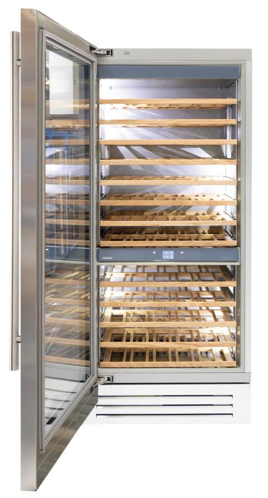 Винный холодильник Fhiaba KS900FW3 имеет две температурные зоны, в которых одновременно можно хранить разные сорта алкоголя и выставлять разные сочетания настроек. Он встраивается в нишу, что удобно, если у вас ограничен метраж помещения. Количество бутылок, которое можно разместить с учетом полной комплектации и из расчета объема бутылки 0,75 л, — 156 шт.