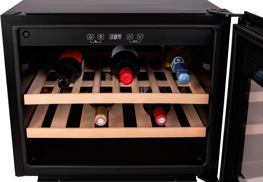 Следует различать температуру, которую нужно поддерживать при долговременном и кратковременном хранении. При длительном содержании вина в винном шкафу должна поддерживаться температура около +5 °C. Срок хранения при этом может превышать год, но хранить таким образом можно далеко не все вина. Под краткосрочным хранением понимают нахождение бутылок в шкафу в течение нескольких месяцев. Температура при этом в зависимости от сорта составляет от +8 до +16 °C. И наконец, для подготовки к подаче красных вин требуется температура 16-18 °C, белых — 10-12 °C, игристых и шампанского — 5-8 °C. В моделях с одной температурной зоной можно устанавливать среднюю температуру в диапазоне от 10 до 14 °C.