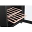 Винный шкаф Haier FWC33GA выполнен в строгом черном цвете и сразу привлекает внимание стеклянной дверцей со стеклопакетом и UV-защитой. Его компактные габариты 83×49.9×45.5 см позволяют вписать прибор в интерьер кухни, бара или небольшой гостиной. Матовая рамка и затемненное стекло придают прибору презентабельный вид и одновременно защищают коллекцию от вредного солнечного излучения. Правосторонний дверной упор делает открывание удобным в планировках с левосторонней столовой зоной. Внутренняя LED-подсветка мягко освещает полки и позволяет выбрать бутылку, не нарушая стабильность температуры.