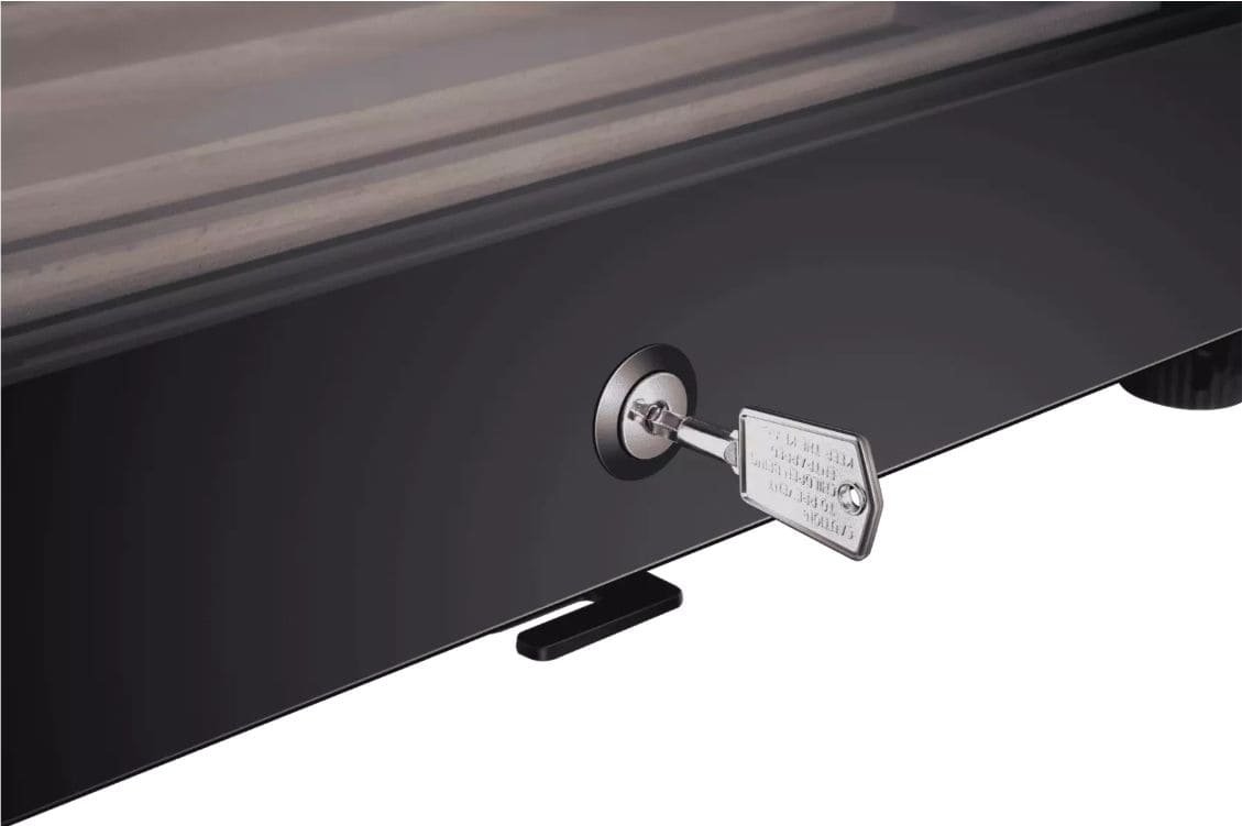 Замок в винных шкафах предназначается для предотвращения нежелательного доступа — в частности, для защиты винной коллекции от детей. Механический замок может располагаться на дверце, как у обычного шкафа или сейфа. Если же дверца холодильника полностью изготовлена из стекла, замок может находиться на цокольной решетке. Такие замки комплектуются набором ключей. Иногда на дверце устанавливаются электронные замки, открыть которые можно при помощи комбинации кнопок или при помощи чипа. Выбрать шкаф с замком можно как для установки в баре или кафе, так и для домашнего использования.